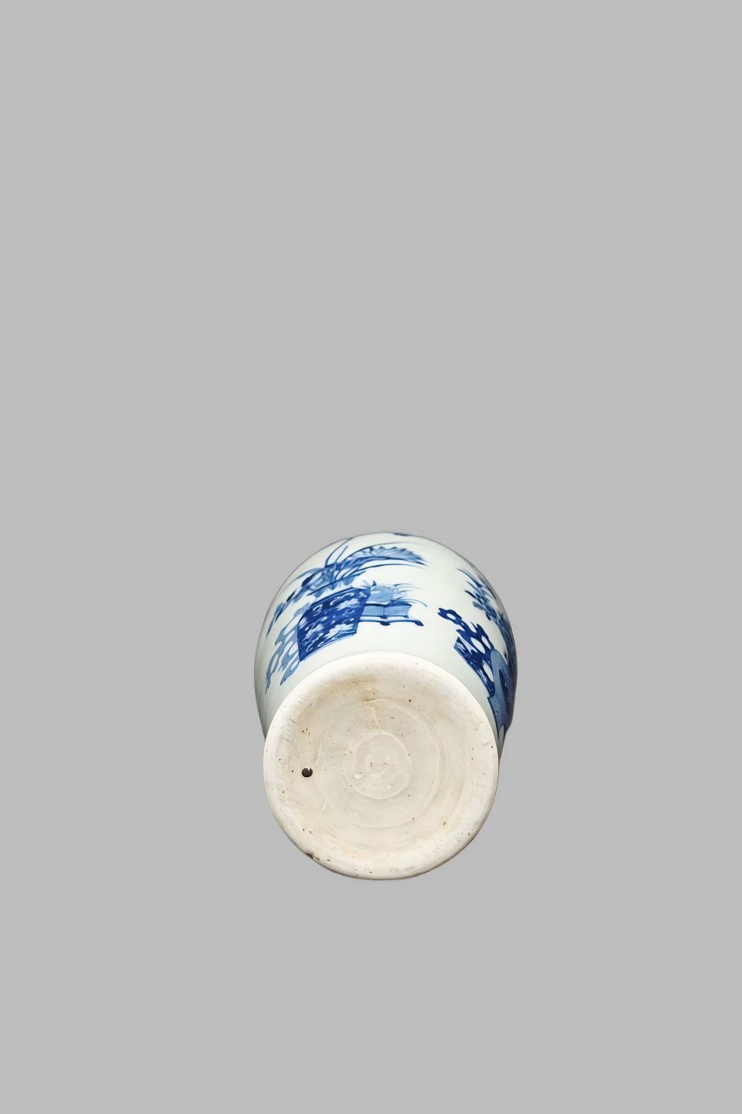 清代的青花博古纹灯笼瓶,是清代青花“文人雅趣+吉祥纹饰”的典型陈设器。是清代青花博古纹器的精品,兼具“文人审美+工艺稀缺性”,收藏价值较高。核心价值:作为"博古纹+灯笼瓶”的组合,是清代文人文化与制瓷工艺结合的实物见证。