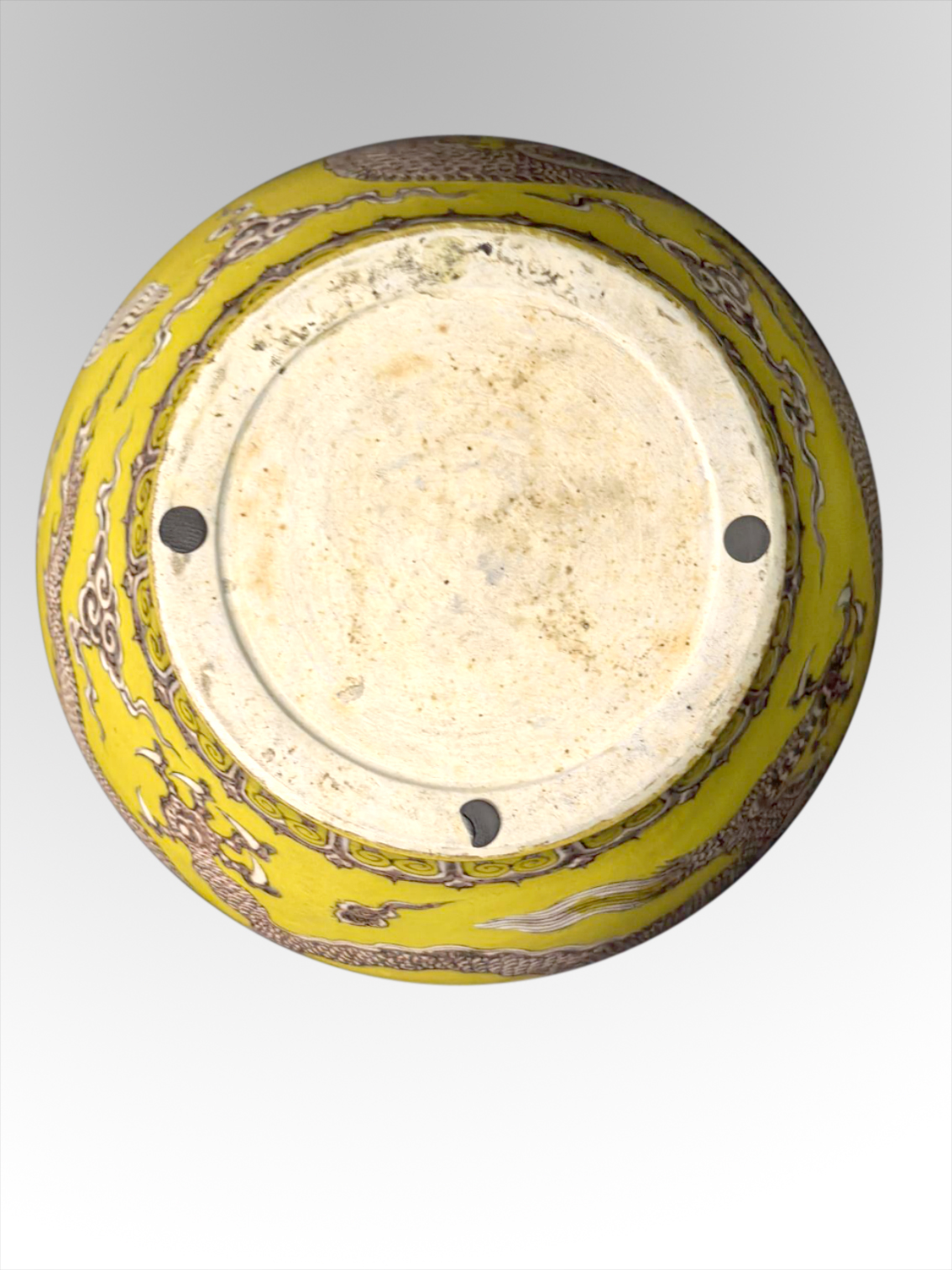 黄釉的尊贵:罐身的娇黄釉是明清时期皇家专属的釉色,象征着至高无上的皇权。其烧制工艺复杂,需多次施釉、入窑,才能达到如此均匀、莹润的效果,非民窑所能企及。