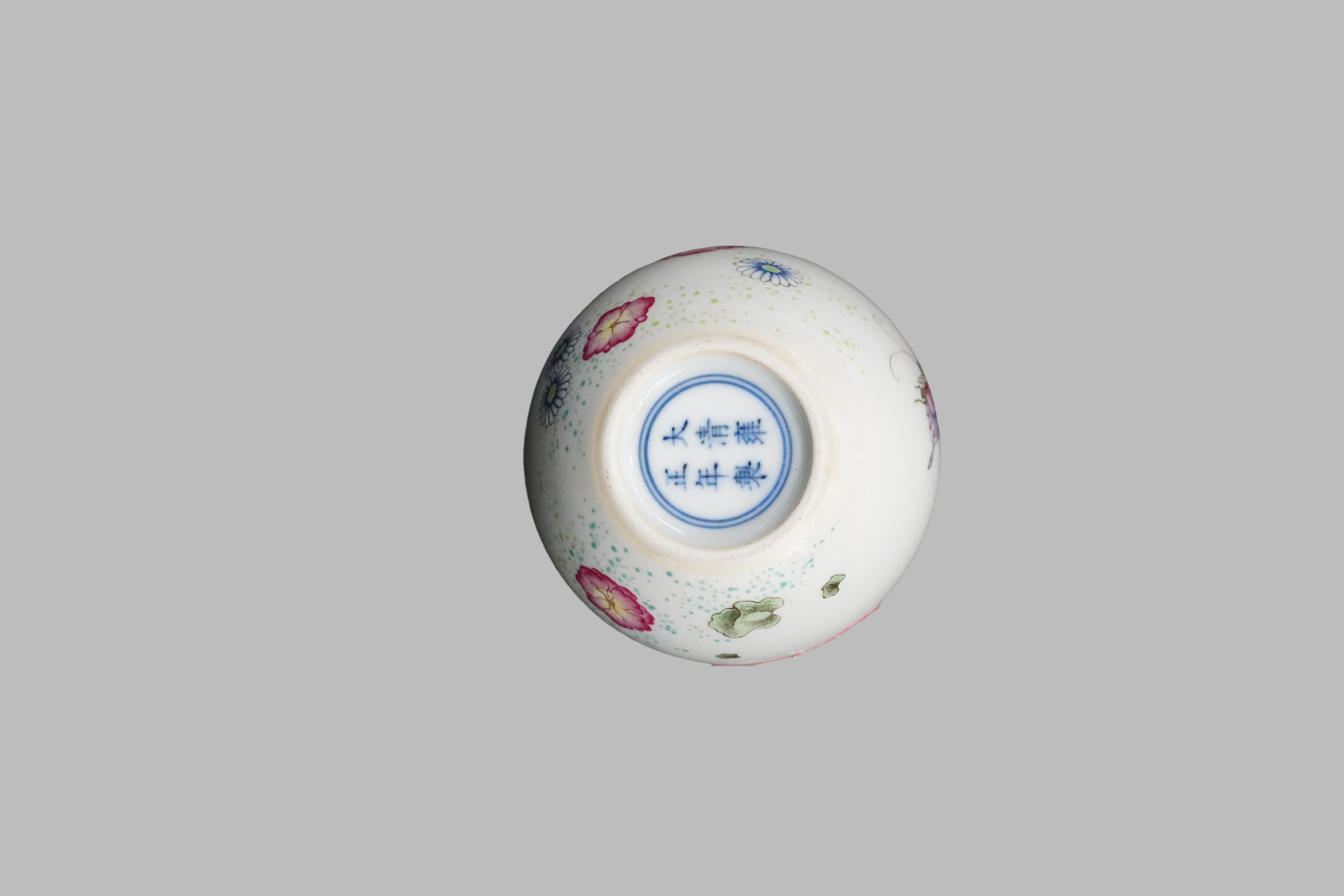 这件是清雍正粉彩蝴蝶纹水盂,水盂是文房器,雍正粉彩以"淡雅精致” 为核心风格,球形水盂(文房储水器),器型小巧圆润、线条柔和(雍正文房器的标志性“雅致”形制);胎体为“糯米胎”,细腻轻薄(迎光透影,体现雍正瓷胎质巅峰);釉面洁白莹润,是典型的“白釉地”;雍正粉彩文房器的标杆:是雍正朝“淡雅粉彩+文房实用”结合的典型代表,奠定了清代文房粉彩器的审美基调。
