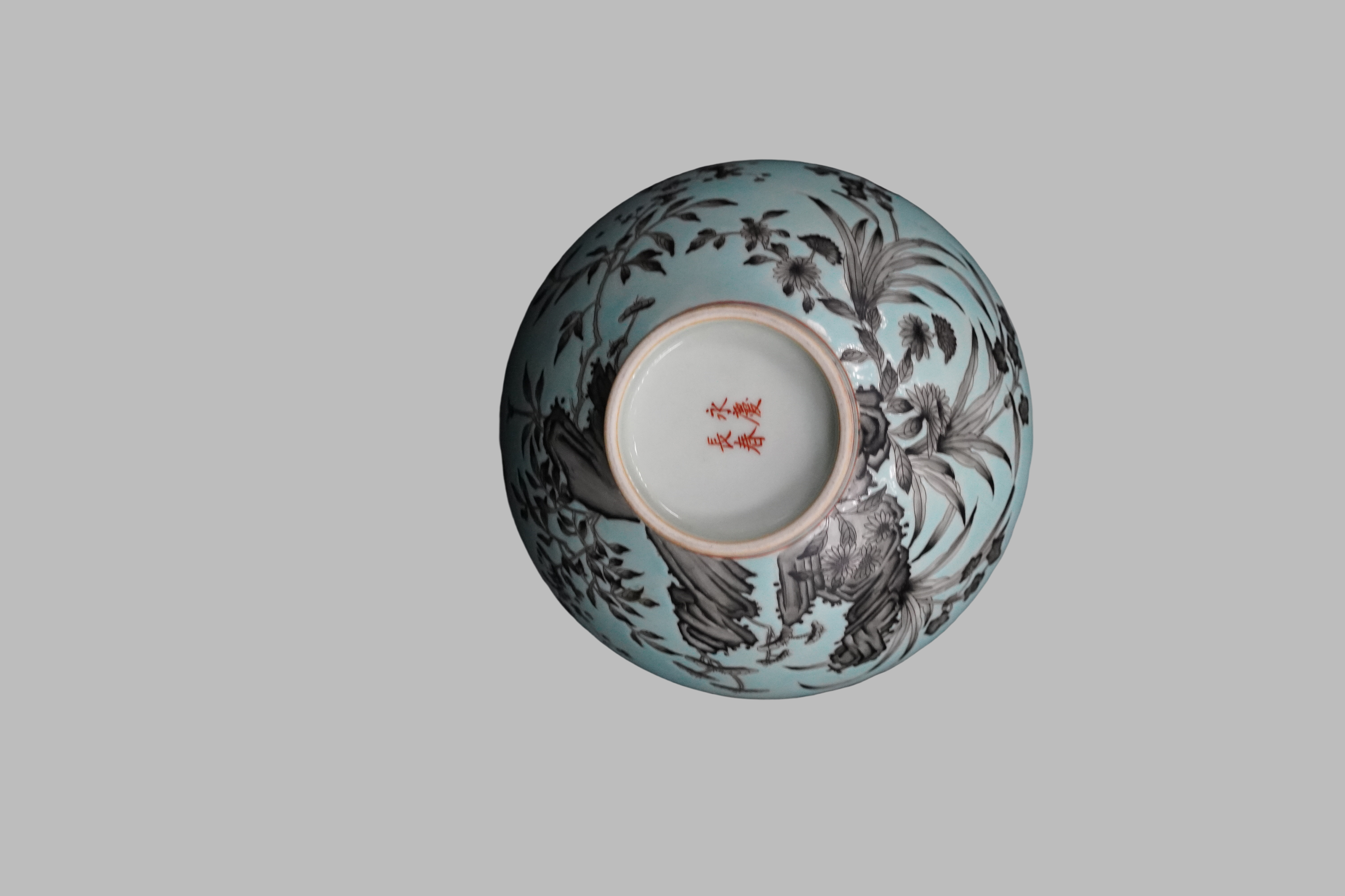 This bowl features a sky-blue glaze ground combined with ink wash floral decorations and a lobed (chrysanthemum-petal) rim, embodying the typical style of the mid-to-late Qing Dynasty.The "sky-blue glaze" was originally developed during the Kangxi reign and grew prevalent in the Qianlong reign of the Qing Dynasty. As a low-temperature glaze, it boasts an elegant and uniform hue."Ink wash color" refers to mineral-based pigments containing cobalt and iron, applied onto the glaze surface and fired at a low temperature. After the mid-Qing Dynasty, this technique was also widely adopted by folk kilns.