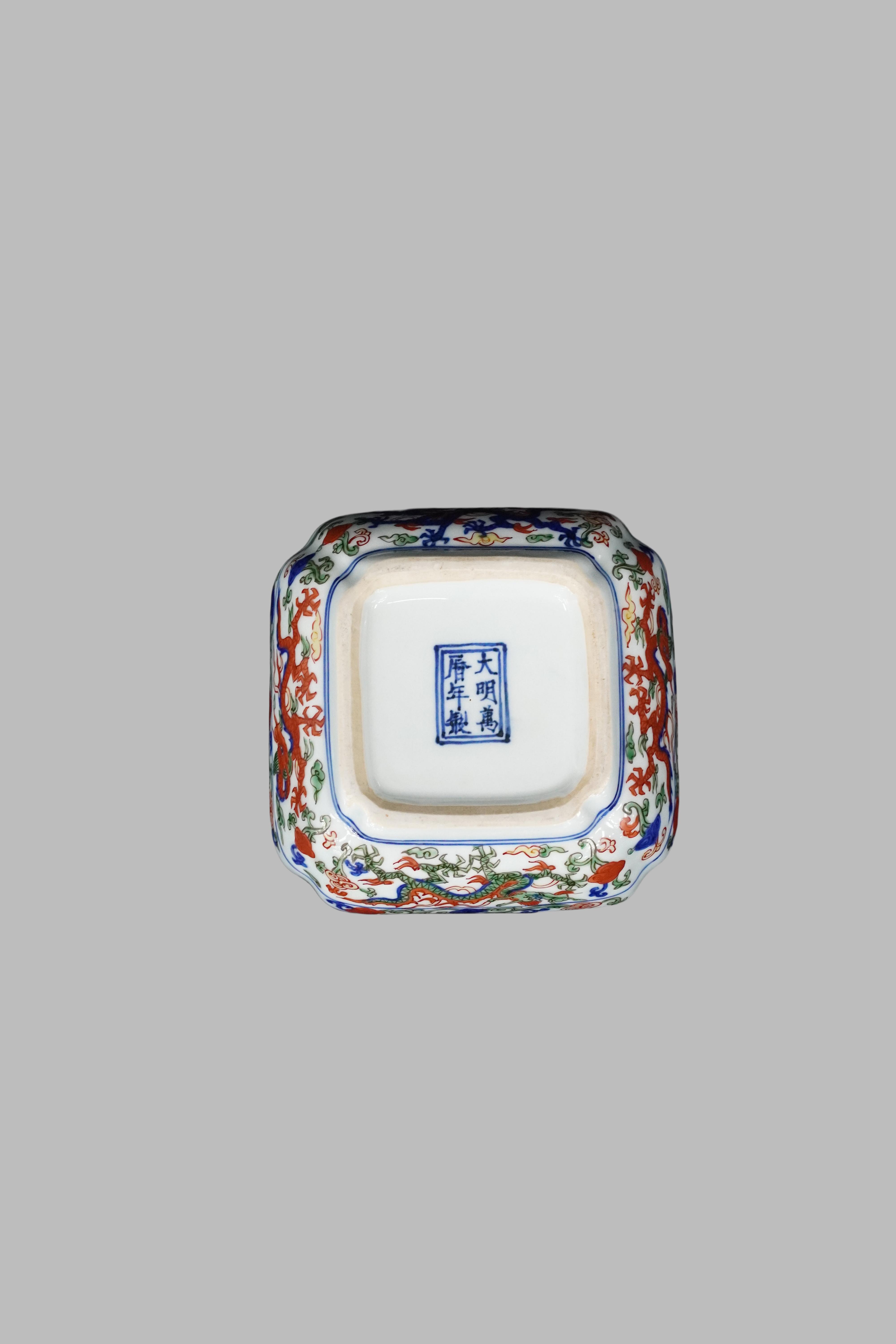 Wucai rectangular box with double dragon patterns of the Wanli period of the Ming Dynasty is a typical category of "distinctive decorative patterns + practical shape" among wucai porcelains of the Ming and Qing Dynasties. As an exquisite work of wucai from the Ming imperial kiln, it combines "scarcity of surviving examples + the prestige of Wanli wucai" and boasts extremely high collection value.