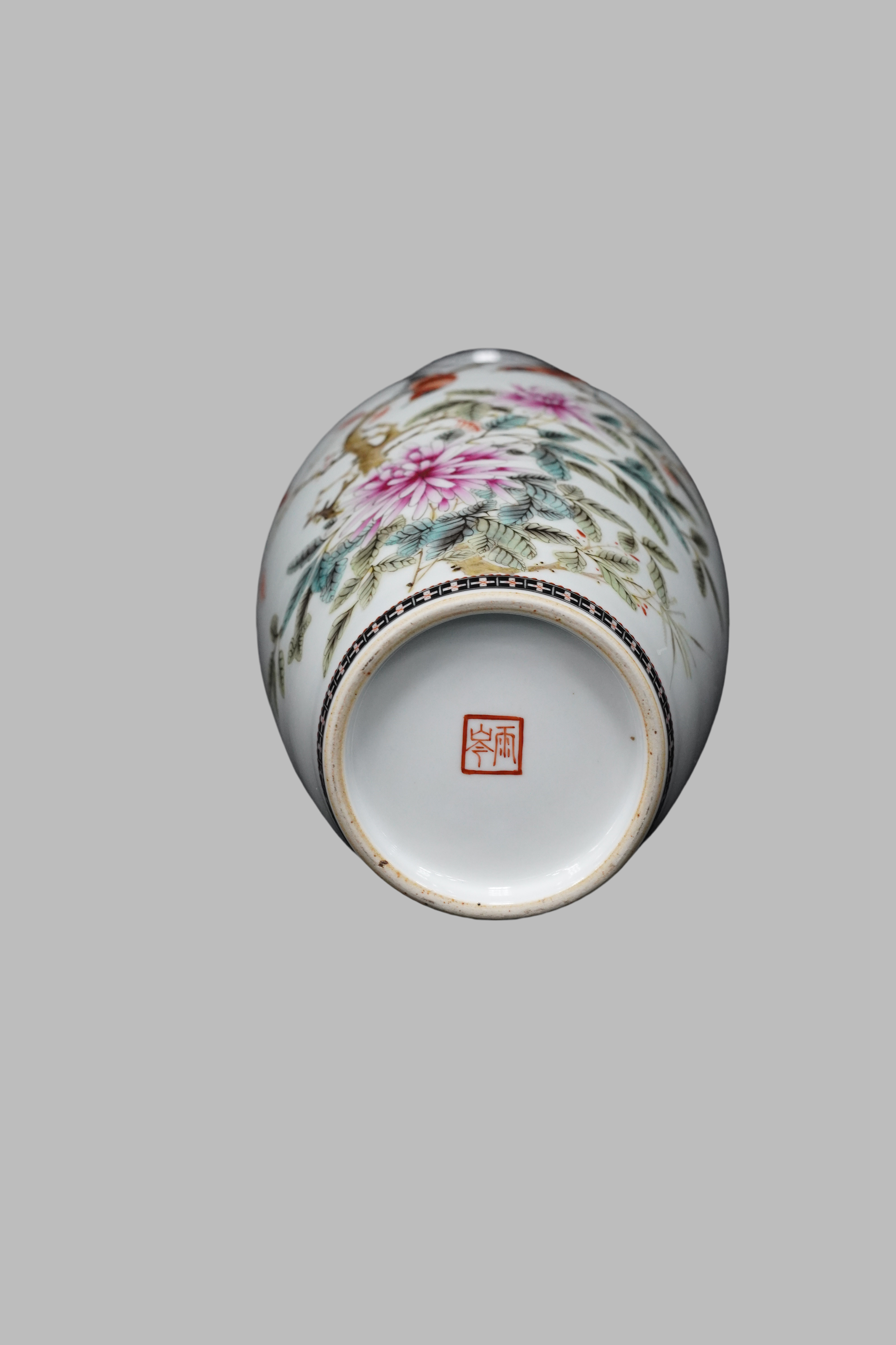 清代光绪至民国时期的浅绛彩花鸟纹长颈瓶,是晚清民国文人瓷中“雅致纹饰+文人审美”的典型品类,作为“浅绛彩/新粉彩花鸟瓶”,是晚清民国文人文化与瓷绘工艺结合的实物见证。