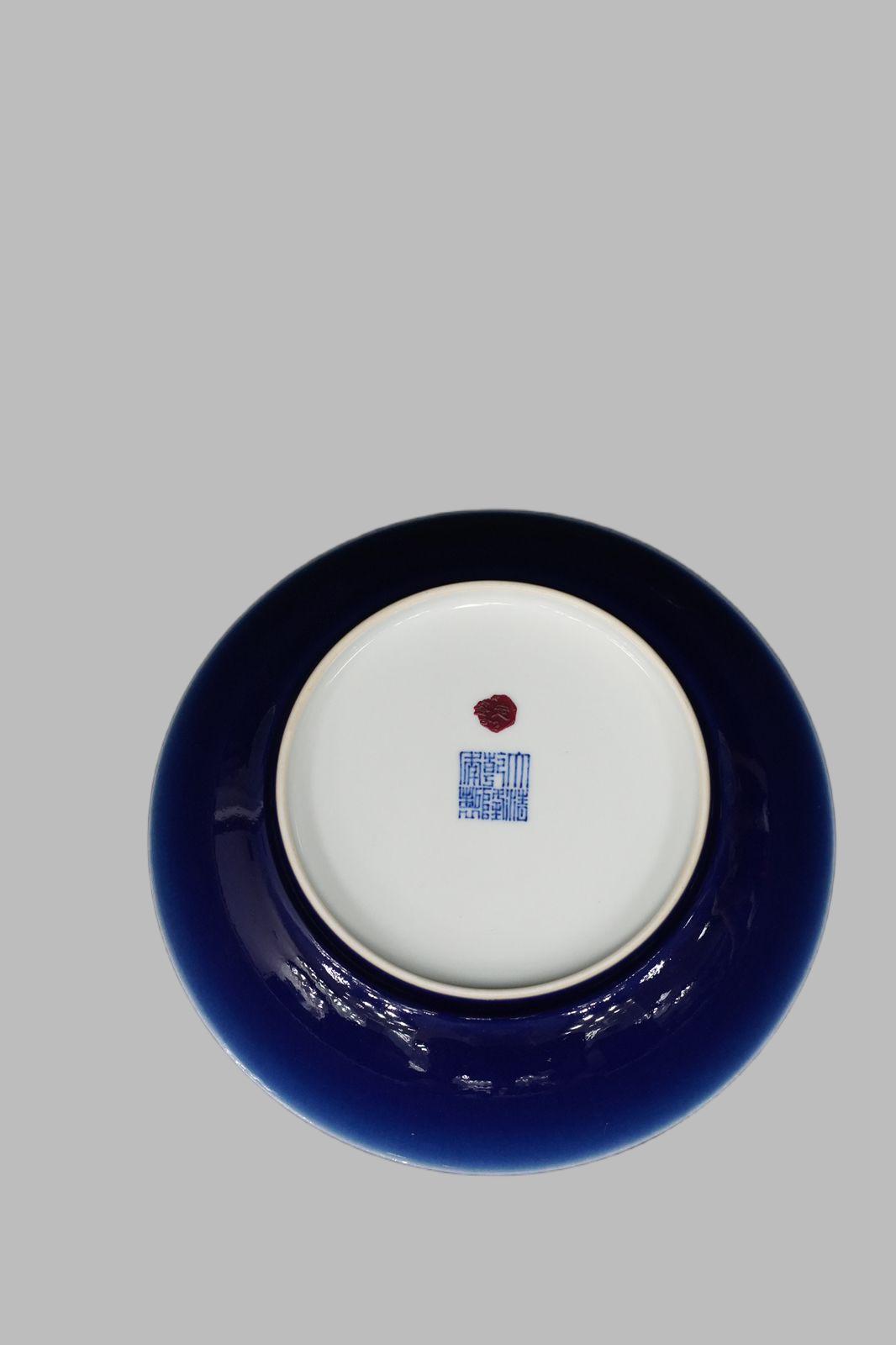 Cobalt blue glazed plate from the Qianlong reign of the Qing Dynasty is a classic category of monochromatic glazed porcelain from the Qing imperial kilns, featuring "exquisite glaze color + practical vessel shape." It was mainly popular from the Kangxi to the Qianlong reign of the Qing Dynasty (cobalt blue glaze was a representative of imperial kiln monochromatic glazes during this period), with numerous imitations produced in the late Qing Dynasty (Guangxu reign) and the Republic of China.