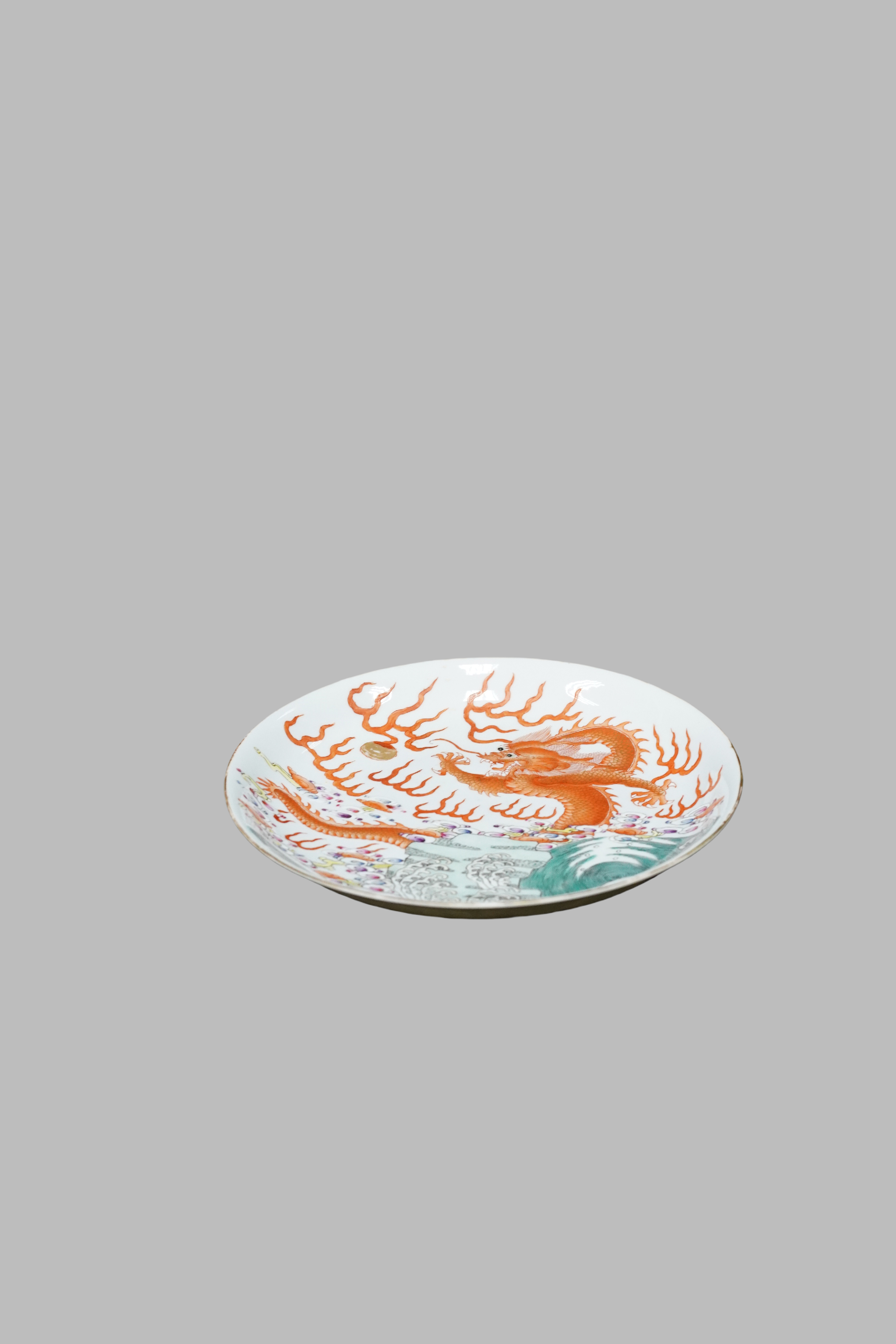Famille rose plate with dragon and wave patterns, Yongzheng Qing Dynasty(1723-1735)