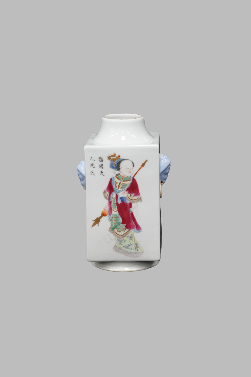 粉彩无双谱方瓶 清道光