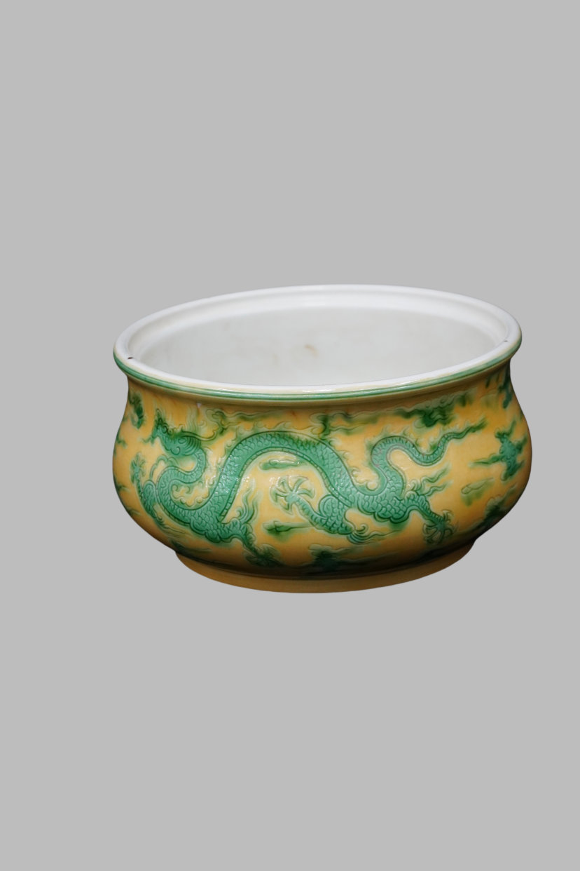 黄釉龙纹钵 明代
