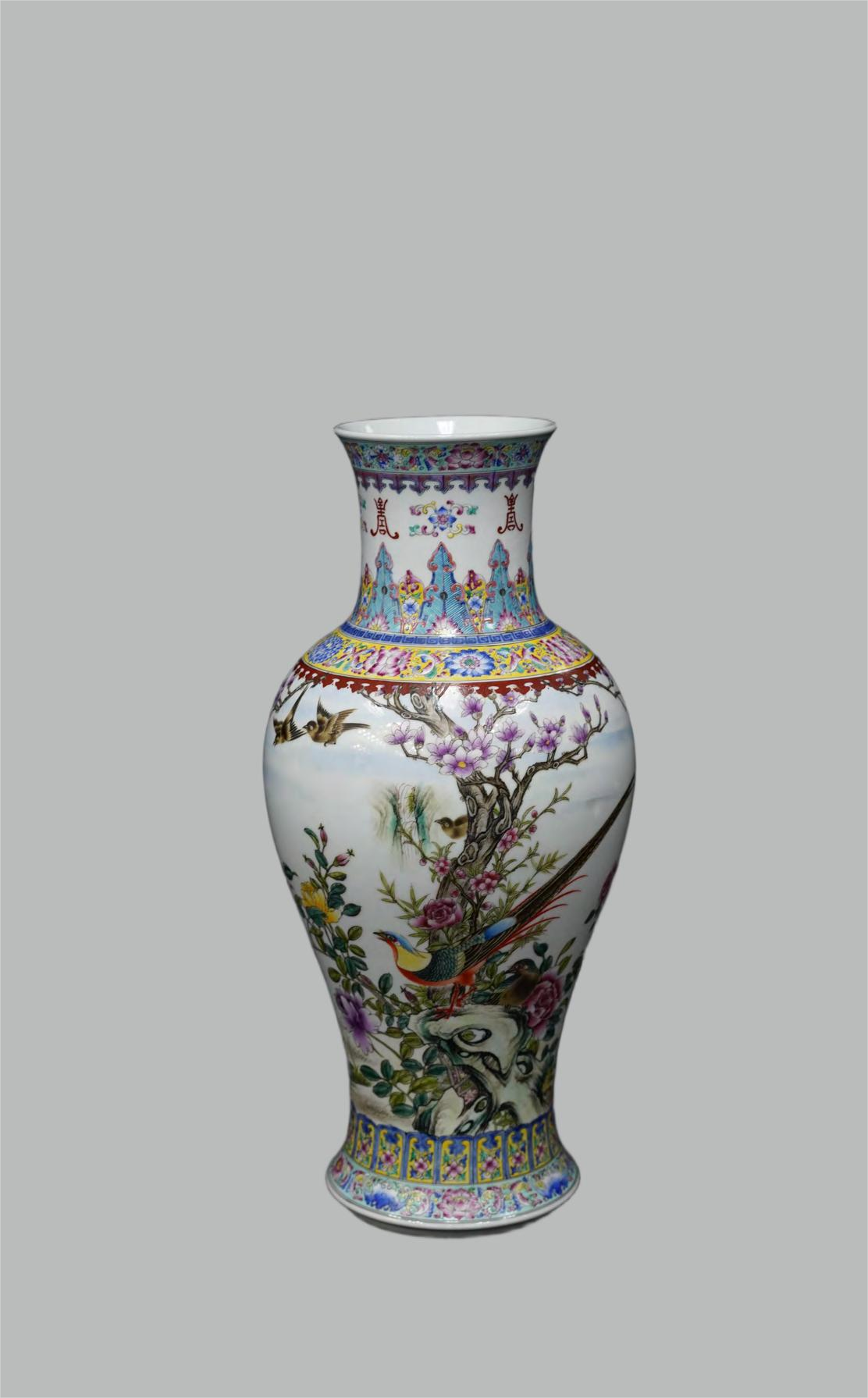 Famille rose vase with bird-and-flower pattern, Qianlong Qing Dynasty(1736-1795)