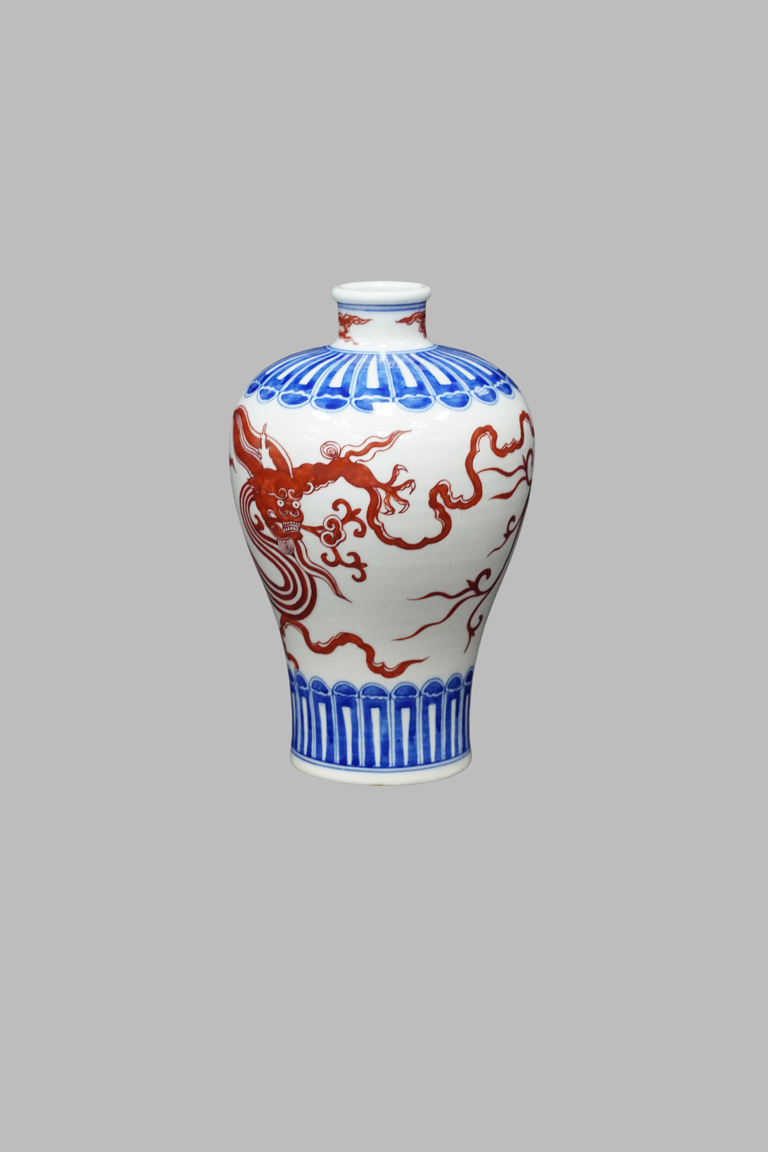 Blue and white with iron red meiping vase decorated with dragon pattern, Kangxi or Yongzheng Qing Dynasty(1622-1722/1723-1735)