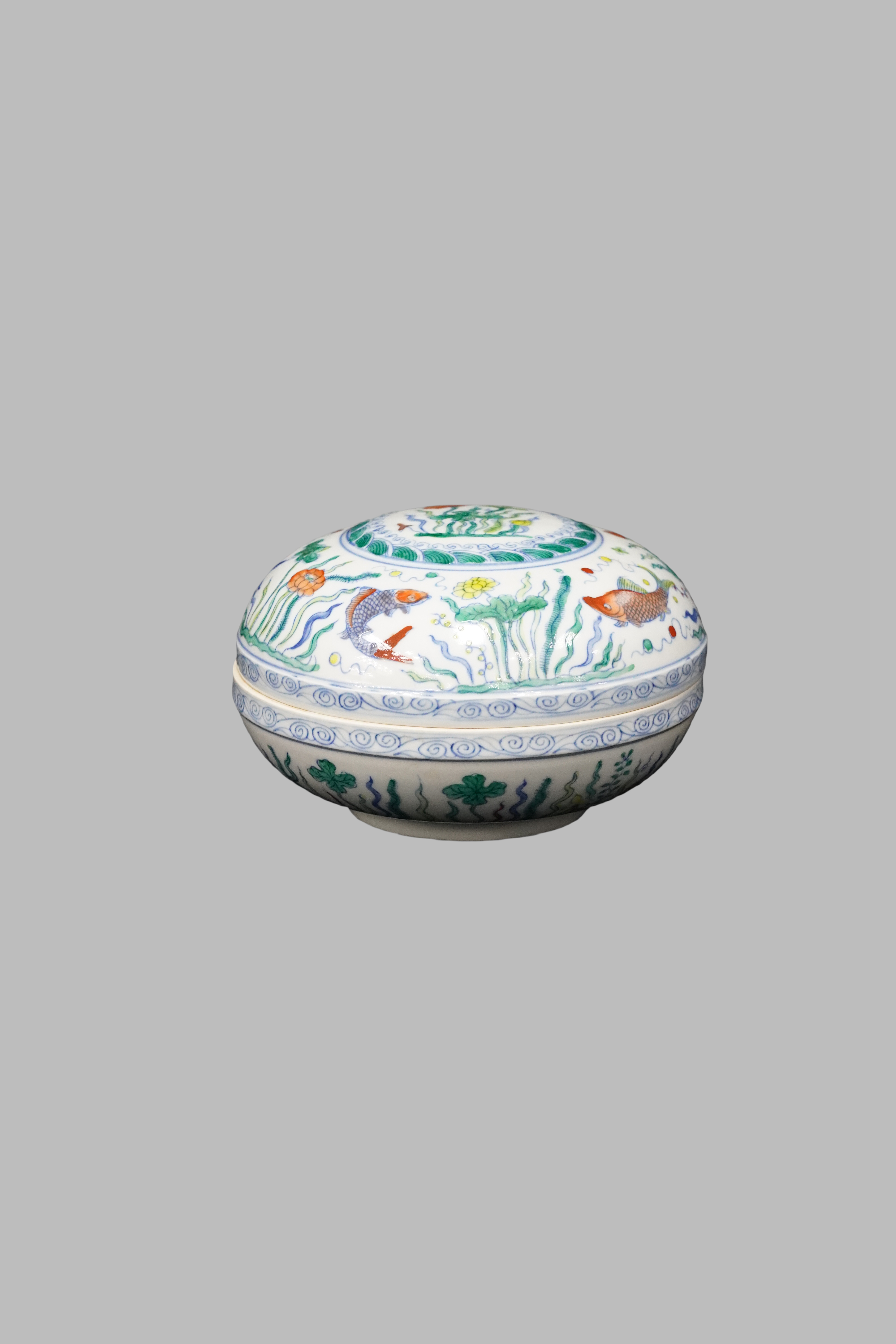 Doucai covered box with fish and aquatic plants pattern, Chenghua Ming Dynasty(1465-1787)