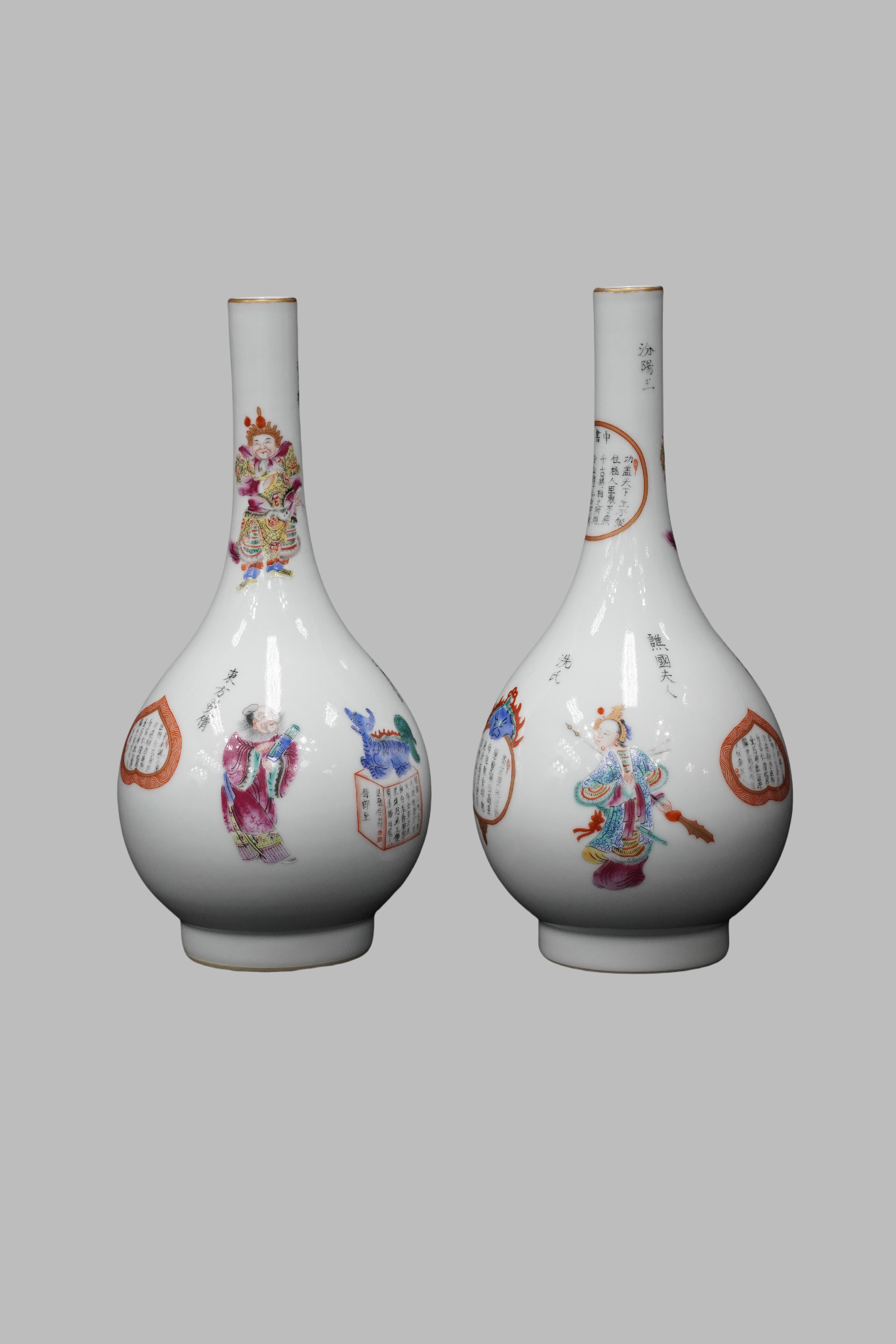 Famille rose long-necked vase with Wushuangpu (Peerless Heroes) figure patterns, Daoguang or Xianfeng Qing Dynasty(1821-1850/1851-1861)