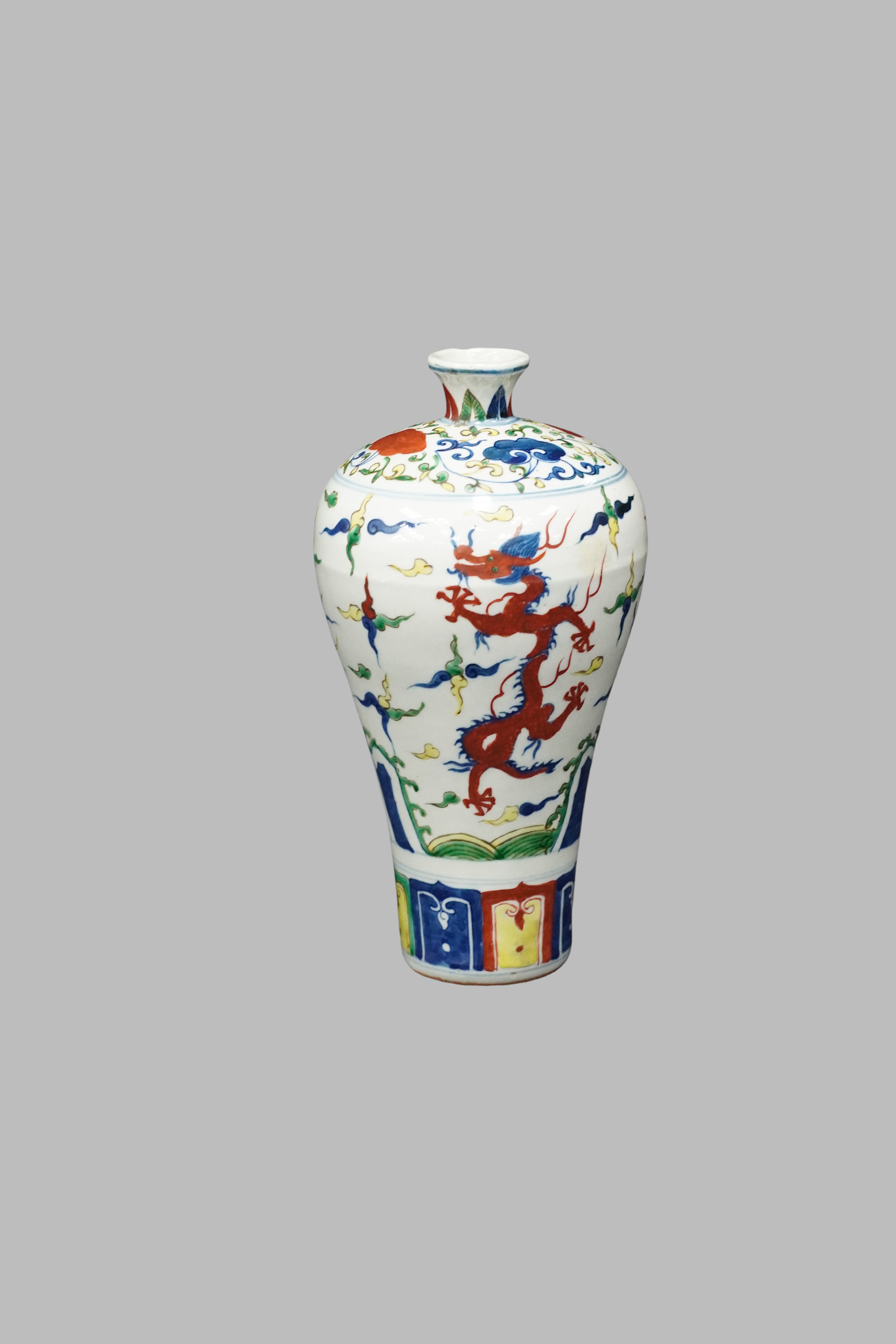 Blue and white wucai (five-color) meiping vase with dragon pattern, Jiajing Ming Dynasty(1522-1566)