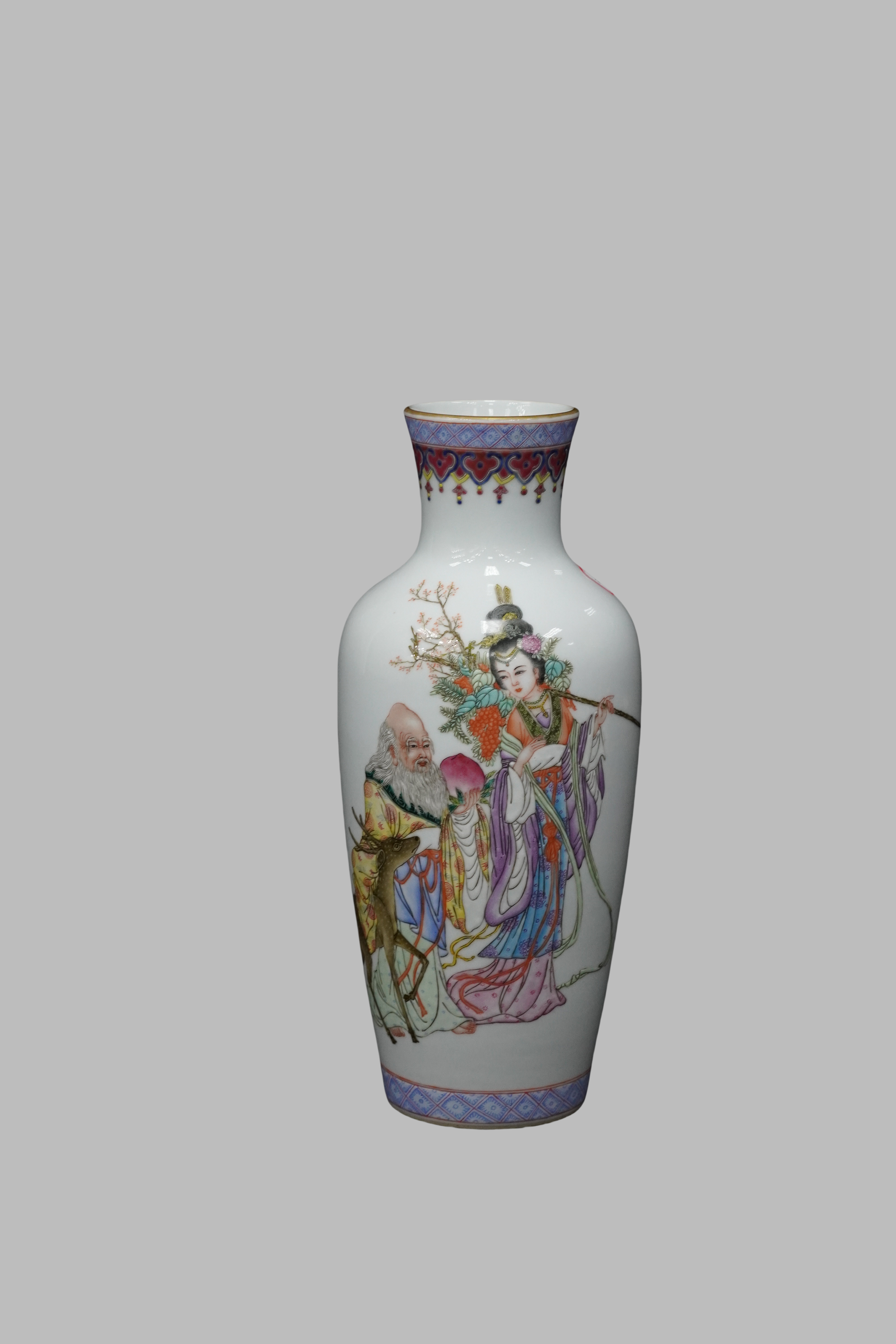 Famille rose appreciation vase (shangping) with Magu presenting birthday blessings motif, Qianlong Qing dynasty(1736-1795)