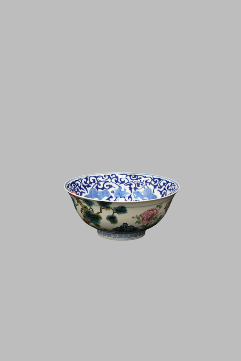 Famille rose bowl with pine, crane, and auspicious cloud patterns, Guangxu Qing dynasty(1875-1908)