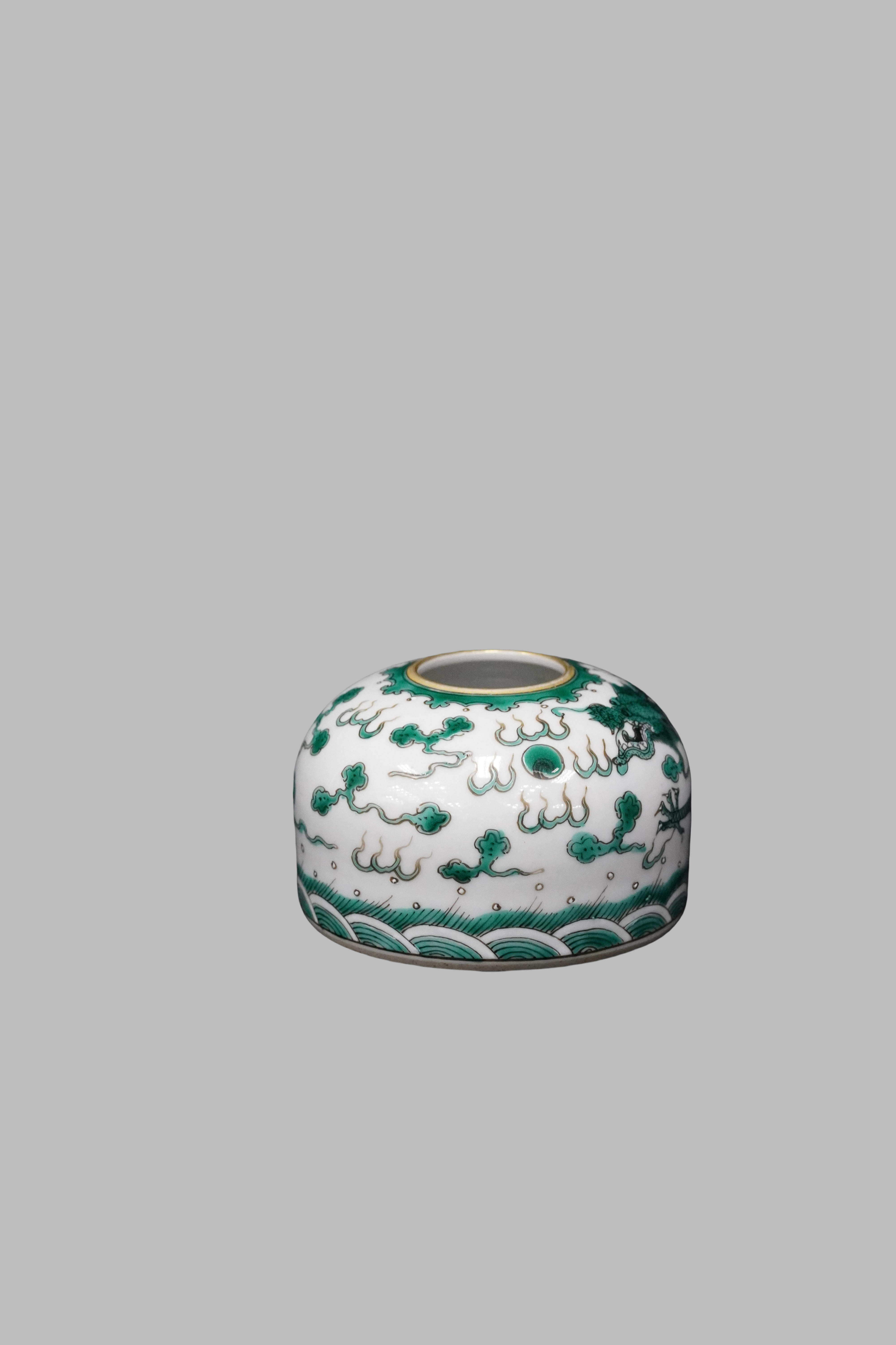 绿彩云龙纹水盂 清代