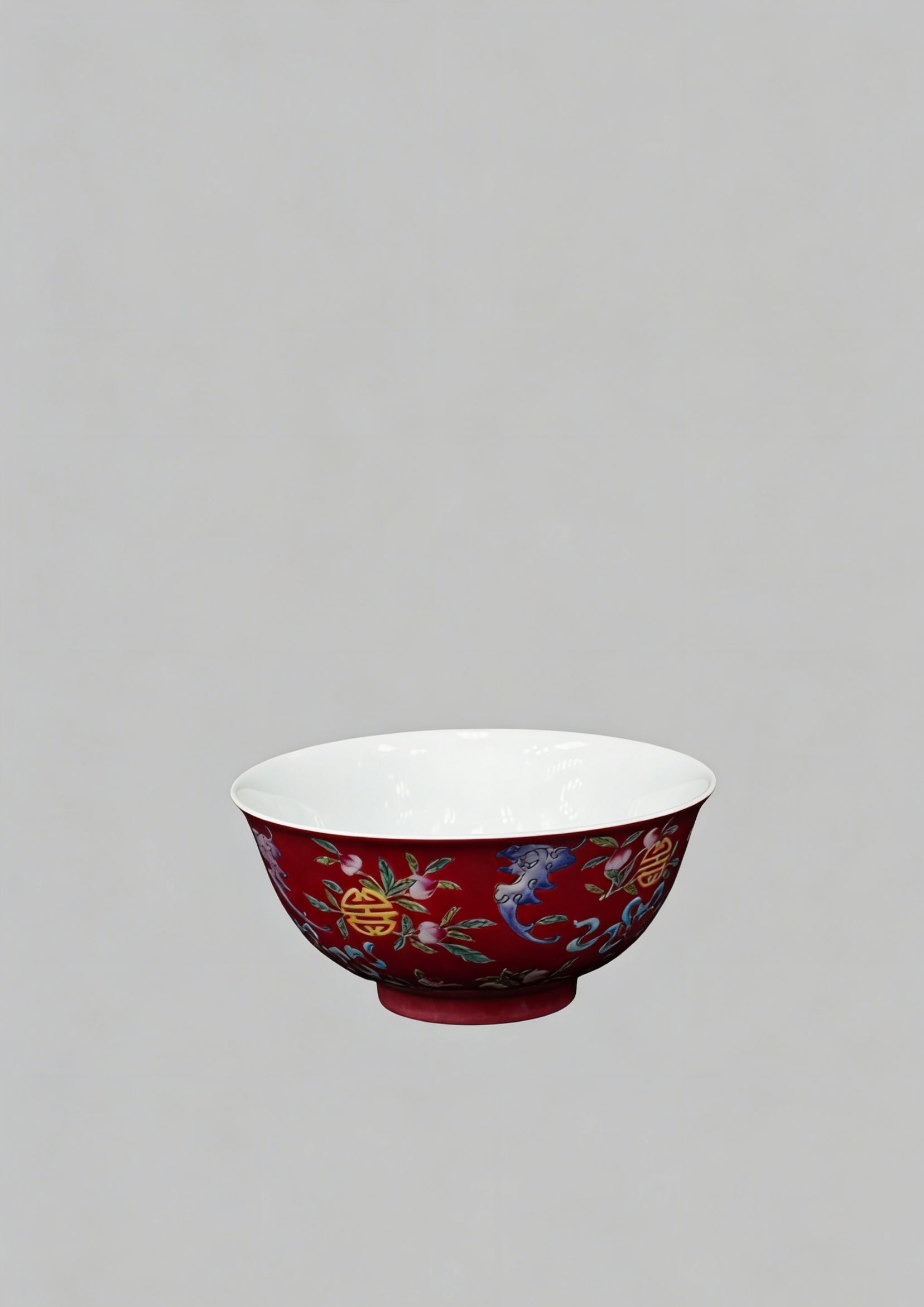 Carmine red ground famille rose bowl with fortune and longevity motifs, Yongzheng Qing dynasty(1723-1735)
