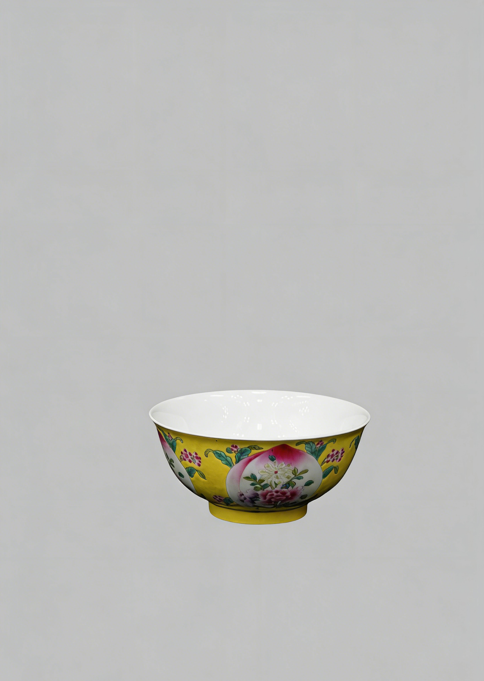 Yellow-ground glazed bowl with peach of immortality motif, Kangxi Qing Dynasty(1622-1722)