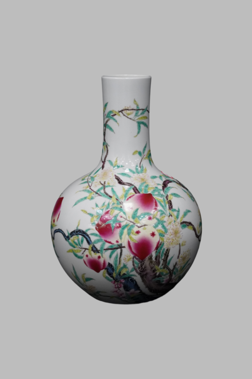粉彩蟠桃纹天球瓶 清雍正