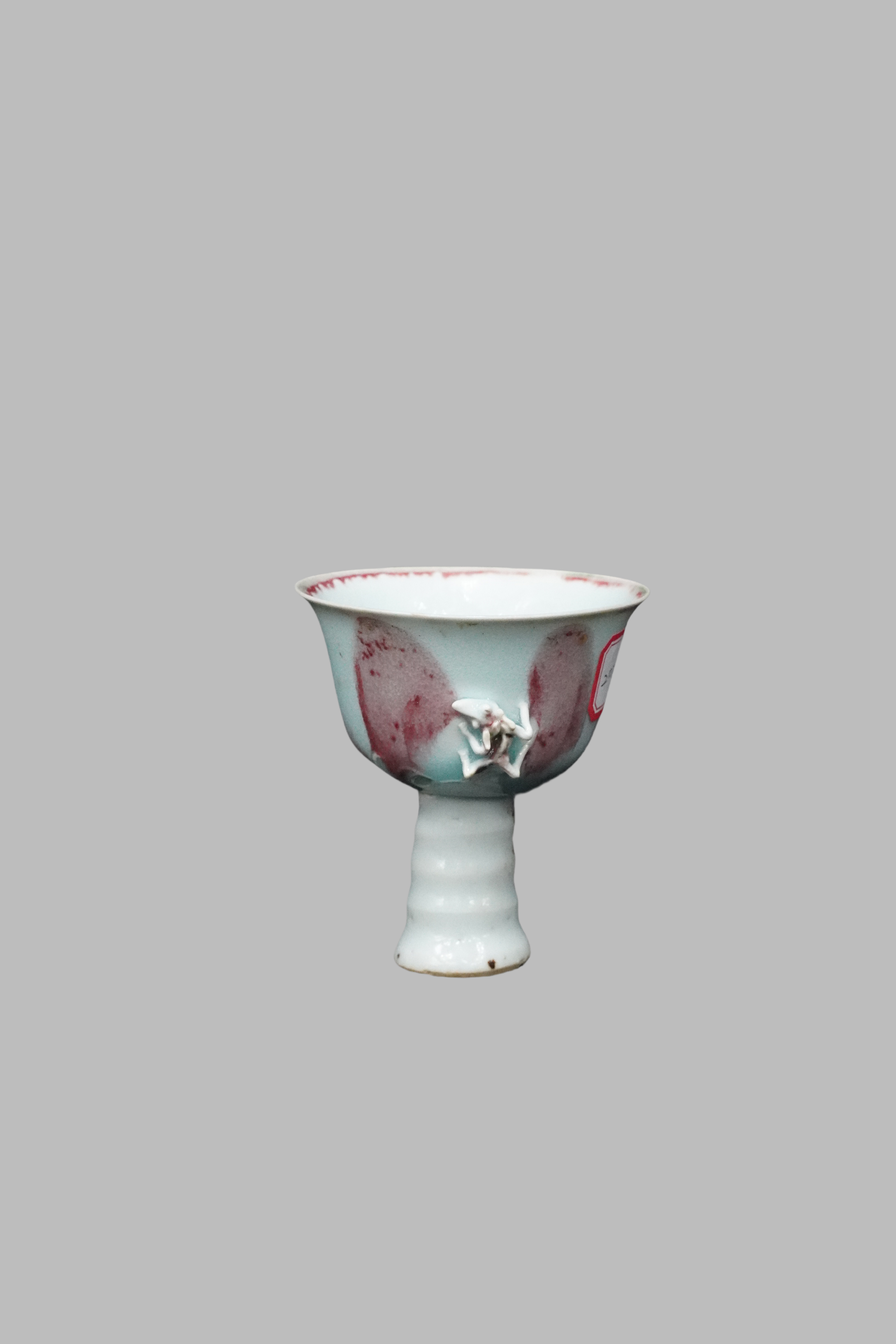 Underglaze red stem cup with applied chi-dragon decoration and revolving center, Yuan Dynasty(1271-1368)