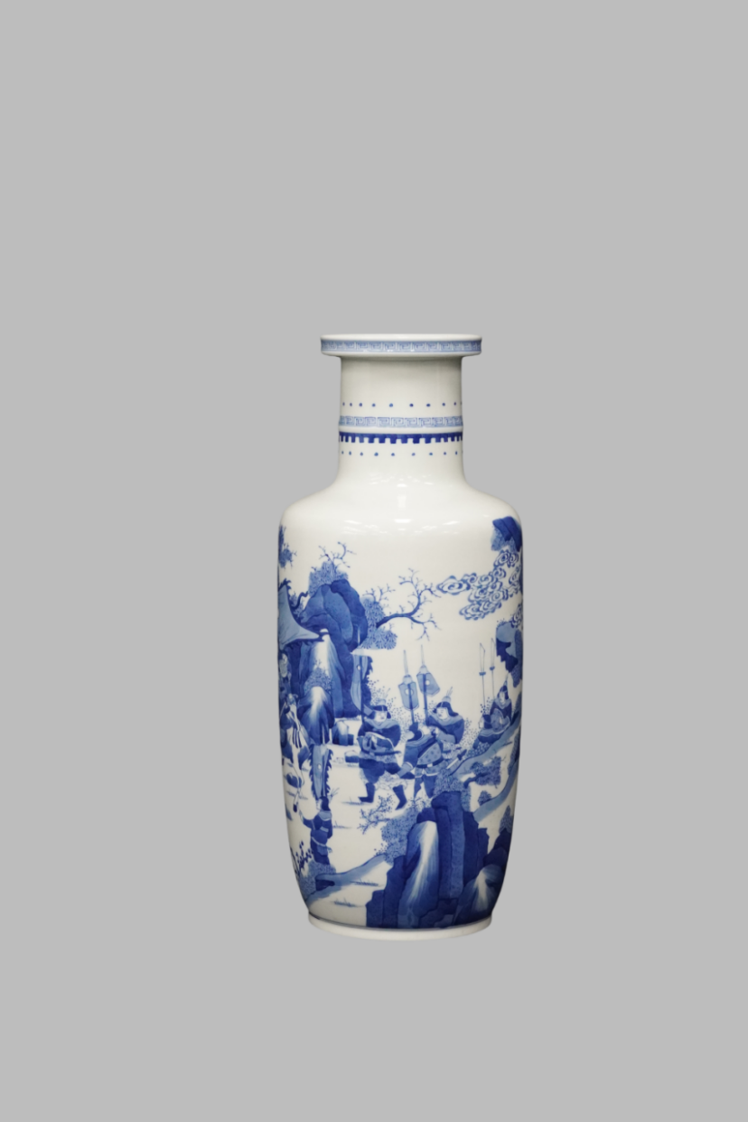 Blue and white mallet-shaped vase (bangchuiping) with figure story pattern, Kangxi Qing Dynasty(1662-1722)